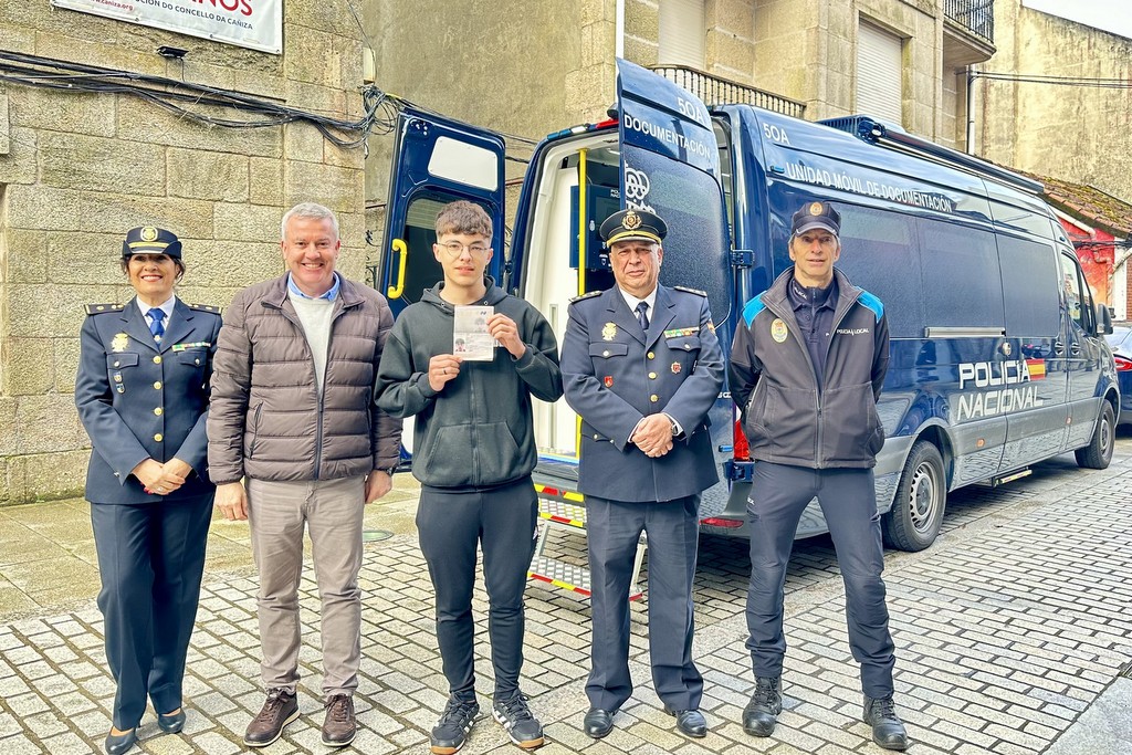 Esta mañana comenzaron a expedirse en A Cañiza los primeros DNI y pasaportes en apenas 10 minutos y en una sola jornada, a través de las nuevas furgonetas integrales de documentación (VIDOC), como ya había anunciado el alcalde el pasado mes de marzo. En la puesta en marcha de este nuevo servicio de oficinas móviles de la Policía Nacional para el rural estuvo presente el Comisario Jefe de la Comisaría de Vigo – Redondela, Ramiro José Gómez García y la Inspectora Jefa de la Secretaría General de la Comisaría, Esther Arén Vidal, junto con el alcalde, Luis Piña.