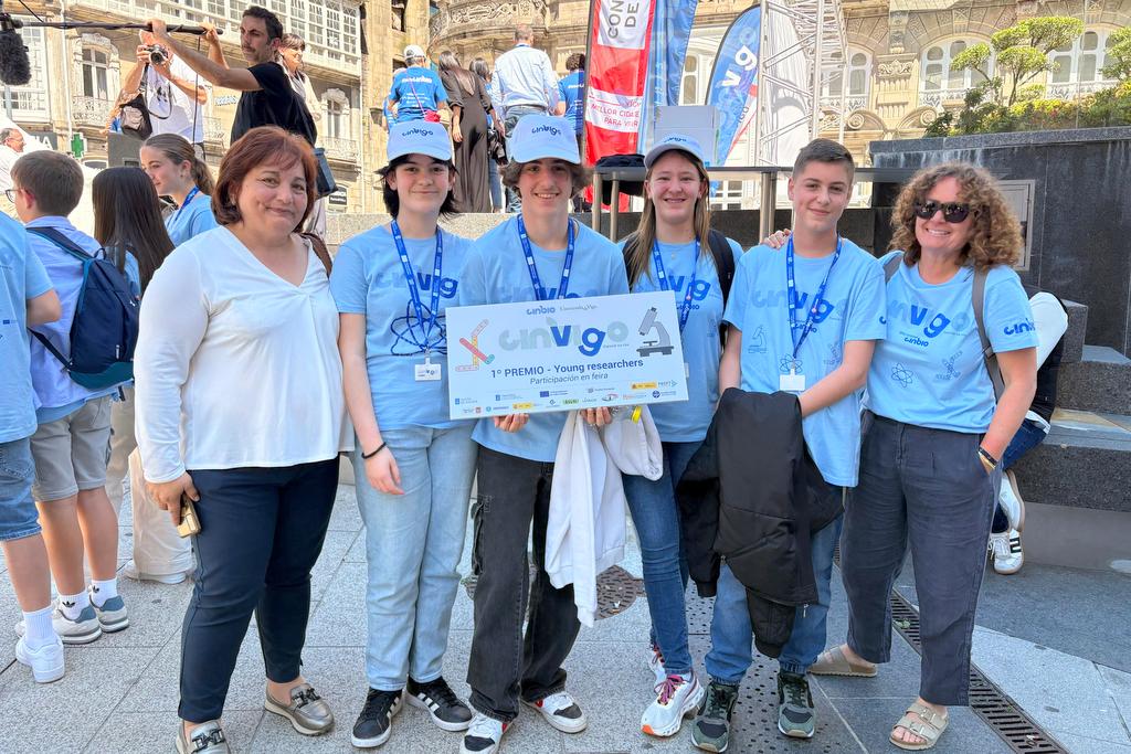 Saray Iglesias, Marta Riádigos, Andrea Estévez, Sofía Rodríguez, Jorge Sobrino y Lucas Bautista, alumnos y alumnas de 3º de la ESO del IES Antón Alonso Ríos de Tomiño, consiguieron el primer premio en la tercera edición de la feria “CinVigo. Ciencia na Rúa”. Un evento organizado por el Cinbio (Centro de investigación de la Universidade de Vigo) donde pueden participar centros educativos con diferentes proyectos de investigación.