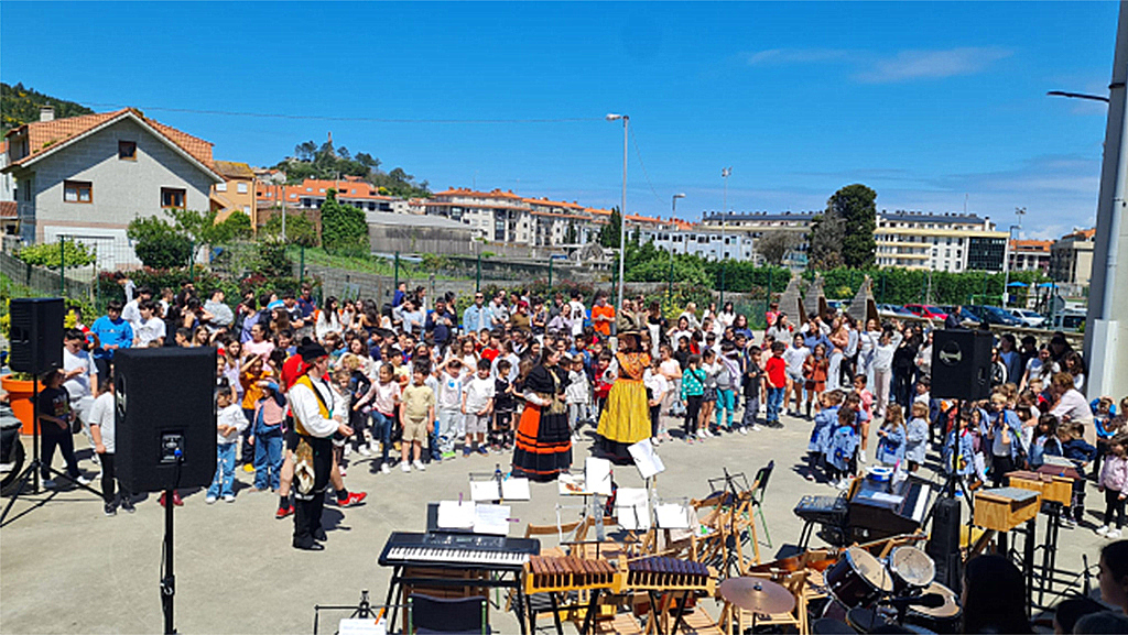 El CPI de Cova Terreña de Baiona está llevando a cabo diversos actos de celebración con motivo del Día das Letras Galegas. El miércoles acudió al centro la Asociación Folclórica Vila de Baiona, que les recibió en el salón de actos. Explicaron las partes del atuendo y un poco de la historia y de las actividades que se desarrollan en el grupo. Después actuaron en el patio norte.