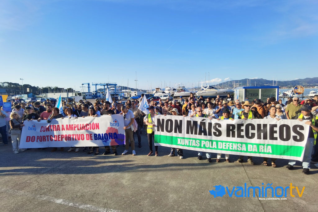 Alrededor de 600 personas se concentraron este viernes delante del Puerto Deportivo de Baiona bajo el lema “Paremos a ampliación do Porto Deportivo”, convocados por el BNG. “Non, non, non, non queremos a ampliación”, “Portos, escoita, Baiona está en loita”, “Iña, iña, iña, a culpa é de Almuiña” o “Non á ampliación que modifiquen o PXOM” fueros algunos de las consignas que se pudieron escuchar. También se recogieron unas 500 firmas en favor de proteger el litoral ante esta agresión.