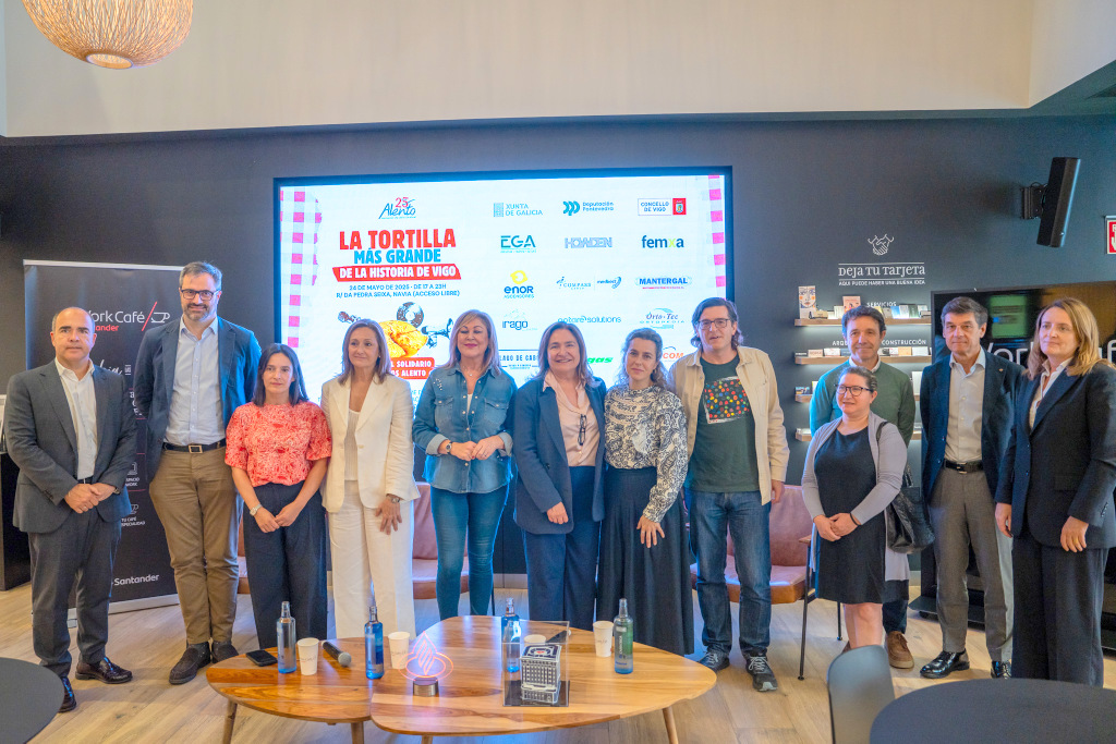 La delegada territorial de la Xunta de Galicia en Vigo, Ana Ortiz, participó este miércoles junto a la vicepresidenta de la Diputación, Luisa Sánchez, en la presentación del festival solidario con el que Alento (Asociación de Daño Cerebral Adquirido) festejará, este sábado 24 de mayo en Navia, sus 25 años de existencia. En el marco del festival se realizará la tortilla más grande de la historia de Vigo, para lo cual se necesitarán ingredientes como 1.700 huevos o 150 kilos de patatas, 30 litros de aceite, 3 kilos de sal y cebolla, y habrá actividades como música en directo y talleres educativos y creativos.