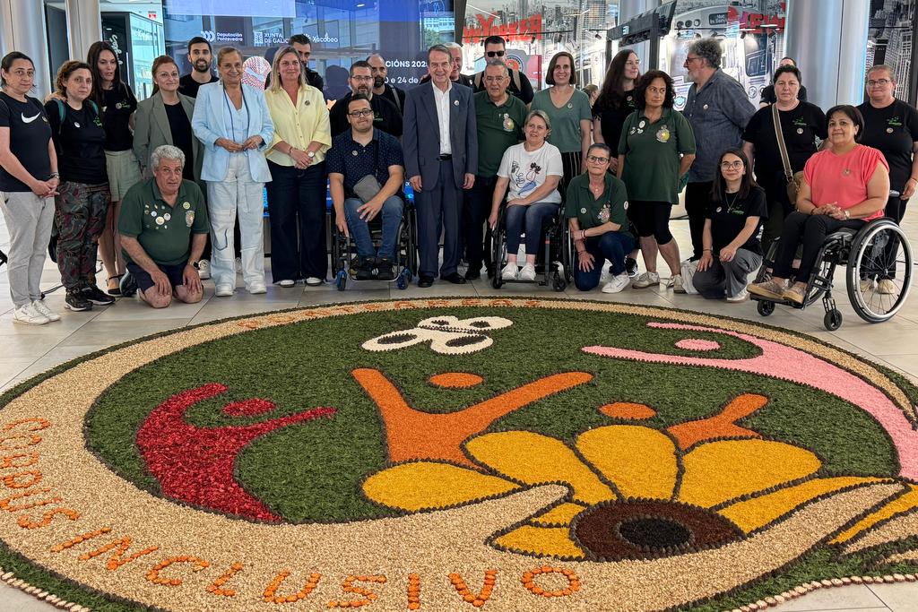 La Asociación de Alfombristas del Corpus Christi de Ponteareas presentó este jueves el logo de Ponteareas Corpus Inclusivo. El tapiz floral fue realizado por usuarios de Adapta y Avelaíña en el Centro Comercial Vialia de Vigo, donde estuvieron acompañados de una representación de alcaldes y alcaldesas del sur de Galicia junto con representantes del Concello de Ponteareas, del Grupo Social ONCE, de la Fundación de Autismo de Galicia y ASTEAVI. El alcalde de Vigo, Abel Caballero, agradeció su trabajo en la divulgación de este arte, candidata a ser declarada Patrimonio Cultural Inmaterial de la Humanidad por la UNESCO.