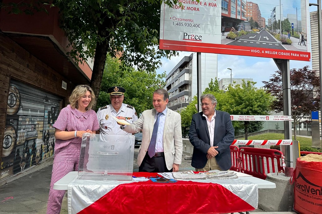 Abel Caballero participó este miércoles en el acto simbólico de colocación de la primera piedra de la obra de humanización de la calle Pintor Lugrís, que tiene un presupuesto de 1,5 millones de euros y un plazo de ejecución de 12 meses.