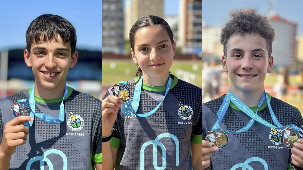 Hugo Dos Reis con dos títulos de campeón gallego y sendas medallas de oro, Carlota Pagés con otra victoria y medalla de oro como campeona de Galicia, e Izan González con una medalla de plata y su subcampeonato, grandes protagonistas del Campeonato Gallego de atletismo en pista de la categoría Sub-14.