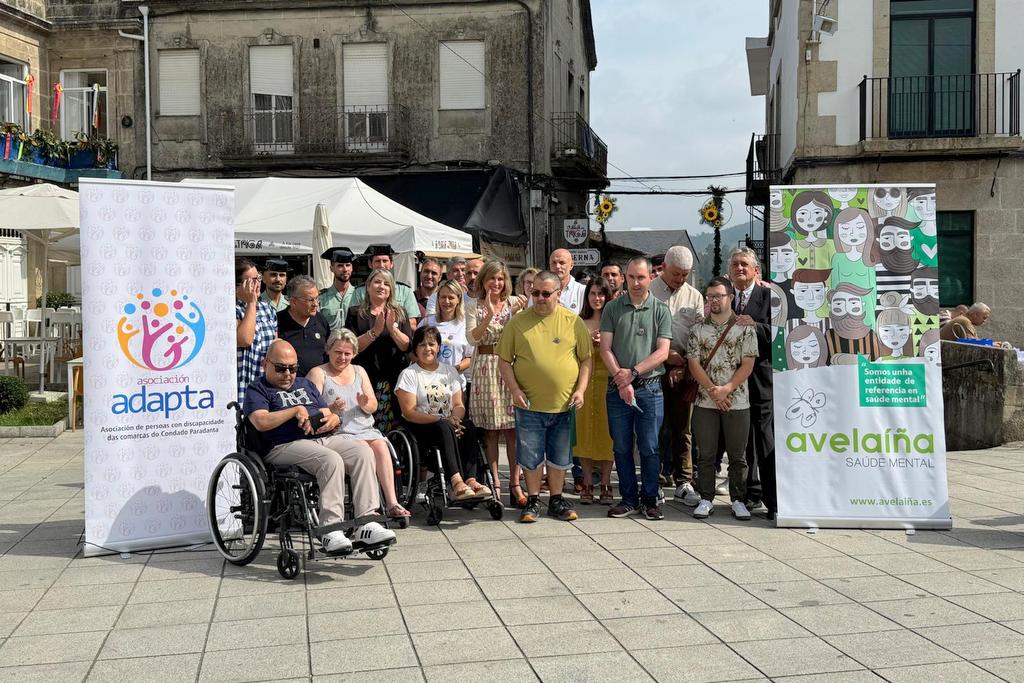 En la confluencia entre la Plaza Mayor con la bajada de San Gregorio la alcaldesa de Ponteareas, Nava Castro, y el teniente de alcaldesa, Juan Carlos González, abrieron esta muestra acompañados de la directora territorial de Política Social de la Xunta de Galicia en Vigo, Ángeles Rouco; del gerente de Avelaíña, Rafael Álvarez, de Ángel Holguera, presidente de COGAMI en Pontevedra; de Montse Cuevas, presidenta de ADAPTA, de miembros de DISCAMINO, también de la Federación Gallega de Ciclismo y del Club Ciclista Ponteareas Escuela Borja Gómez y del pregonero del Corpus 2025 Borja Gómez Méndez.