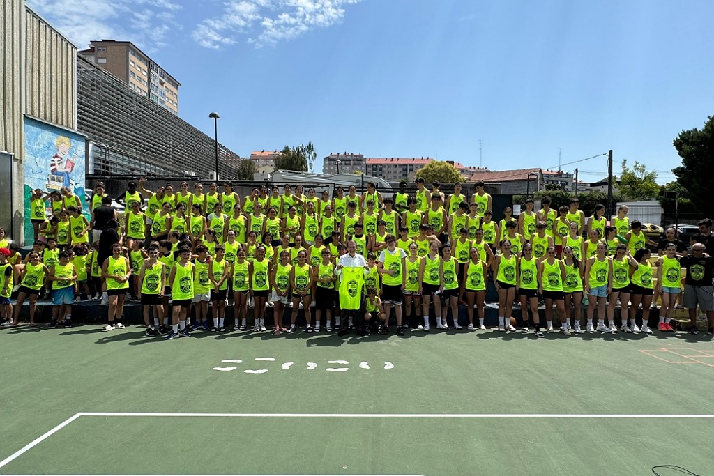 Abel Caballero saludó este jueves a las 130 niñas y niños que participan en el Campus de Verano del Club de Baloncesto Seis do Nadal, que durante una semana aprenden técnicas y destrezas de este deporte en las instalaciones del CEIP Seis do Nadal. El regidor, acompañado por el edil de Deportes, Manel Fernández, y la concejala de Medio Ambiente, Nuria Rodríguez, les deseó una feliz estadía en el campamento y que disfruten del verano y de todas las actividades organizadas en la ciudad para niñas, niños y jóvenes.