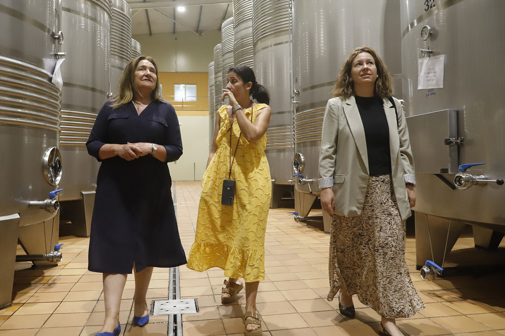 La delegada territorial de la Xunta en Vigo, Ana Ortiz, y la alcaldesa de Salvaterra de Miño, Marta Valcárcel, visitaron este martes las instalaciones de Bodegas La Val para conocer el nuevo proyecto de enoturismo que se beneficiará de las ayudas al sector vitivinícola a través del Plan Territorial de Sostenibilidad Turística (PSTD) Enogastronomía de Galicia 2023-2025. Este Plan cuenta con una dotación total de 34,5M€, cofinanciados por la Unión Europea, a través del Mecanismo de Recuperación y Resiliencia, que se destinan a tres actuaciones de cohesión y 11 planes de sostenibilidad turística en destino.