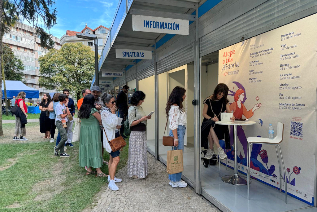 La feria abrirá el jueves a las 18:00 con Samuel Ferro firmando “Tierra de Leyenda 3 Camino del purgatorio” y “A Queimada das ánimas”, en el stand de la librería Ledo. A las 18:30 horas hay doble cita: Antía Mosquera firma “Amores extraños” en el stand de la librería Porto, y Carmen Pereiro Oliveira firma “En aquellas calles dibujé mis pasos”, en el stand de la librería Uróboros. A continuación, a las 19:00 horas, presentación del disco- libro ilustrado “Coplas analfabetas”, de Antonio Tizón, con acompañamiento de la ilustradora Eugenia Sanmartín.