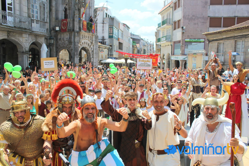El inicio fue espectacular, con un desfile con más de 150 personas divididas en nueve comparsas que representan galos, castrexos, romanos, egipcios y griegos. Cleopatra, Astérix, Obélix, Panorámix y todos y todas las participantes de los Juegos Olímpicos, acompañaron a los portadores de la llama olímpica, el Rey Castrexo Pepo Suevos, el polifacético artista, Tonhito de Poi, y el influencer, Miguel Mandayo. Desde el templete de la red de San Luis, el desfile llegó hasta la Plaza Arquitecto Antonio Palacios, con la participación de la Guardia Romana (Legio X Gemina del Club Falcata), donde tuvo lugar el encendido de la llama olímpica y el destronamiento simbólico del alcalde, Alejandro Lorenzo, por parte del rey castrexo.