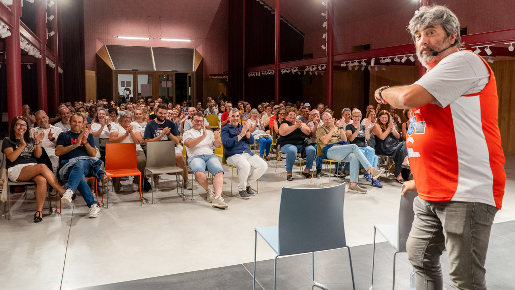 El actor y humorista Pepo Suevos llevó el humor a Tui el viernes con su “Xira do cuarto de século” en un abarrotado Espacio Sociocultural de la calle Camilo José Cela.