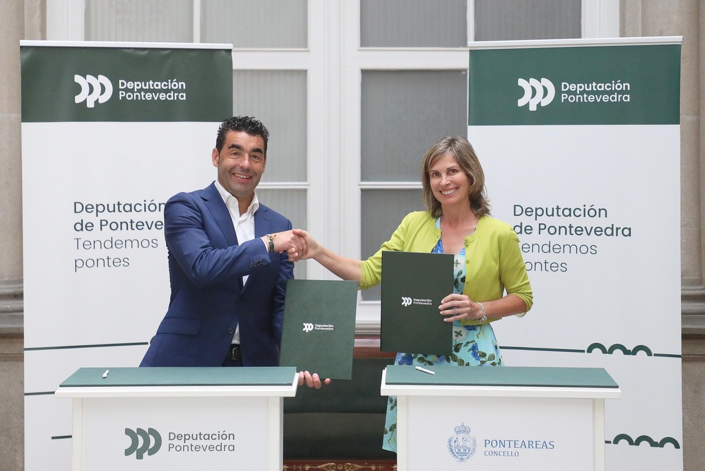 El presidente de la Diputación de Pontevedra, Luis López, acaba de firmar el convenio de colaboración con la alcaldesa de Ponteareas, Nava Castro, para la financiación del proyecto básico y de ejecución de una pista de atletismo y vestuarios en la localidad. Un acuerdo firmado en el marco del Plan Extra, el plan de inversiones del gobierno provincial que moviliza hasta 38 millones de euros entre los ayuntamientos de menos de 50.000 habitantes de la provincia para ejecutar proyectos estratégicos. En el Pazo provincial, López y Castro sellaron un acuerdo para financiar la actuación, que asciende a casi 1,2 millones de euros, de tal manera que la Diputación financia el 70%, más de 834.600 euros, y el Concello de Ponteareas el 30% restante, casi 357.700 euros. Al acto también asistió el teniente de alcalde, Juan Carlos González.