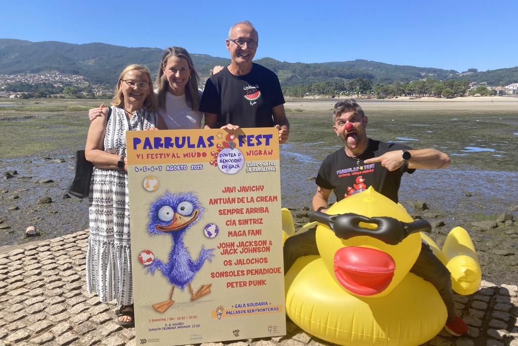 El Concello de Nigrán se rinde del lunes 4 de agosto al jueves 7 al máximo disfrute de los niños gracias al Parrulas Fest, el festival más esperado por la infancia y familias de toda la comarca y que tiene lugar de manera gratuita en el escenario al aire libre del estuario de A Foz. En esta sexta edición, la cita contará con 9 de las mejores compañías de artes escénicas de todo el país (desde clown, a circo, humor, magia, malabares, música y otras disciplinas), y finalizará con una gala solidaria a favor de Gaza (Palestina) organizada por “Pallasos sen Fronteiras” y dirigida por Peter Punk, nombre artístico del nigranés Isaac Rodríguez, cabeza más visible del festival. Como ya es habitual, habrá sesiones matinales dedicadas a la primera infancia (martes y miércoles a las 12:00 horas) y el resto de las actuaciones serán, como siempre, a las 19:30 y 20:30 respectivamente. Toda la programación puede consultarse en la web del Ayuntamiento de Nigrán. El Parrulas Fest está organizado desde el Concello de Nigrán a través de la Cooperativa Gallega de Artistas Charlatana y cuenta con financiación de la Diputación de Pontevedra a través de la línea 2 del Plan +Provincia.