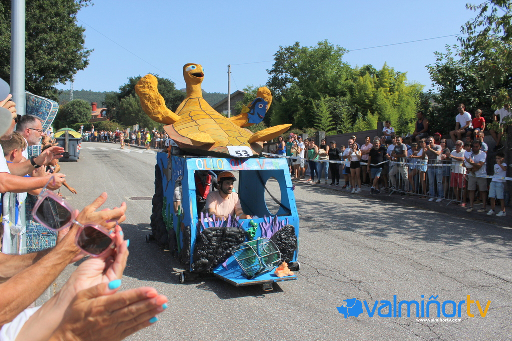 Millares de personas de toda la provincia acuden cada año a presenciar las hilarantes estampas que deja esta prueba. El espectáculo, que por segunda vez se retransmitió en streaming, comenzó con una primera bajada de entrenamiento y, a continuación, la competición oficial con sendas mangas cronometradas. El recorrido se mantuvo igual que el año pasado para mantener la espectacularidad, saliendo del Torreiro de San Roque para girar a la izquierda en la calle Xuncido (barrio de Balinfra) y afrontar ahí un desnivel aún mayor, con una rasante y una horquilla en el trazado de 90 grados en la propia meta.