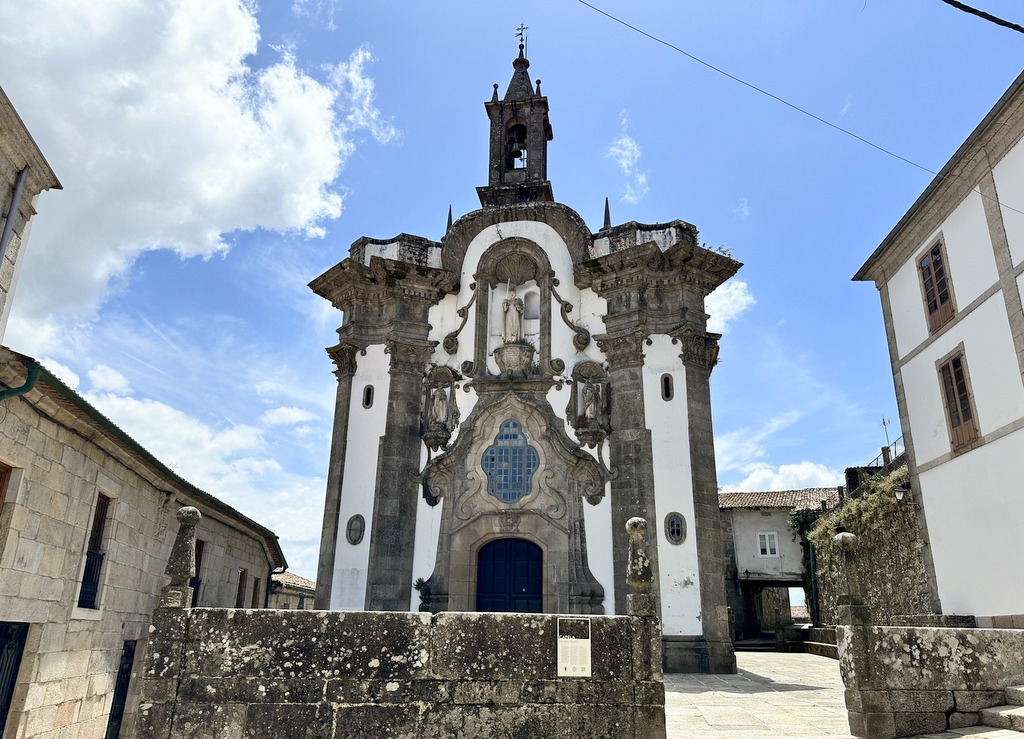 Constituye esta iglesia un ejemplar único del barroco portugués en Galicia, en el que algún estudioso denomina barroco del Norte, influencia del arte de André Soares en la región del Miño. Fue levantada sobre la casa donde murió este santo dominico en el siglo XIII, iniciándose su construcción hacia 1769 aunque su fecha de finalización se demoró hasta 1803. La capilla tiene planta centralizada, destaca su cúpula gallonada o los interesantes frescos de principios del siglo XIX.