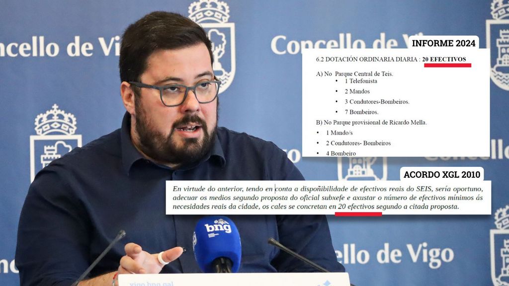 El portavoz municipal del BNG, Xabier P. Igrexas, reveló el acta que demuestra que fue el propio Gobierno de Abel Caballero quien redujo de 24 a 20 los efectivos de los “servicios mínimos inexcusables” por jornada, en un acuerdo de la Junta de Gobierno Local (XGL) de 10 de mayo de 2010. Un acuerdo que fue ratificado el pasado 25 de abril de 2024 por la concejala de Seguridad, Patricia Rodríguez Calviño, firmando el informe propuesto por el jefe del servicio de Bomberos, que fija en 20 la dotación ordinaria mínima por jornada y que fue incorporado en el expediente para determinar la jornada laboral de los bomberos.