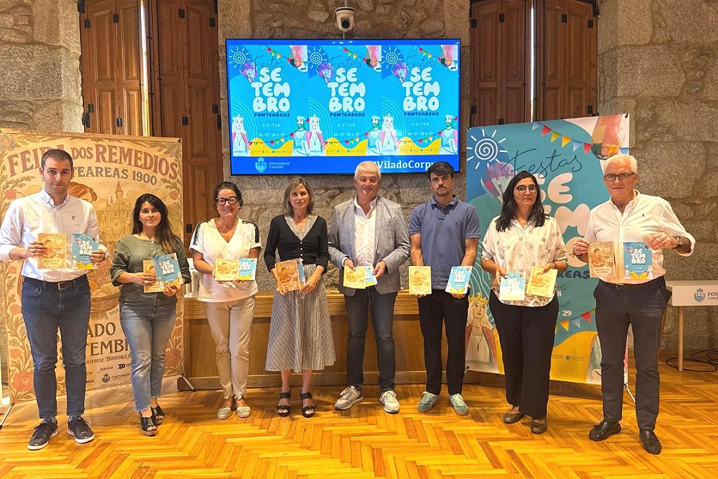Potentes propuestas musicales, puestos enogastronómicos, desfile, comida popular, espectáculo circense, espectáculo visual de fuego y más puestos de artesanos son algunas de las novedades del programa de las Fiestas de Septiembre que viene de presentar el Concello de Ponteareas. El teniente de alcaldesa, Juan Carlos González, y la alcaldesa, Nava Castro, arropados por concejalas y concejales del gobierno presentaron un programa que “da un impulso a las Fiestas de Septiembre con propuestas de calidad porque queremos potenciar nuestras fiestas patronales”.