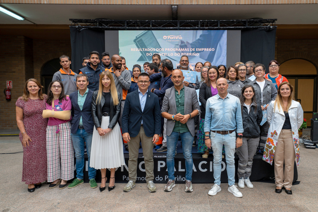 El conselleiro de Emprego, Comercio e Emigración, José González, acudió esta mañana a O Porriño para asistir, precisamente, al acto de presentación de los resultados de cuatro planes municipales activos este año. “A falta del remate final de todos ellos se alcanzó una media de más del 50% de inserción laboral, un dato que en el caso del Programa Integrado de Empleo (PIE) es muy superior, logrando ya que el 70% de los participantes consiguieran un contrato laboral y con expectativas a que ese porcentaje vaya en aumento de aquí a final de mes, superando el objetivo del 40% comprometido con la Xunta de Galicia”, explicó el alcalde Alejandro Lorenzo, remarcando la importancia de impartir una formación acorde con las necesidades y demandas reales del mercado laboral. “Los datos que hoy presentamos evidencian, una vez más, el éxito de un modelo basado en la formación adaptada, la orientación personalizada y la implicación directa con las empresas”. En esa línea también se expresó el titular de empleo de la Xunta, poniendo en relieve “la implicación tanto de las administraciones locales como de las empresas a la hora de fomentar la empleabilidad en beneficio del tejido económico de nuestra Comunidad”.