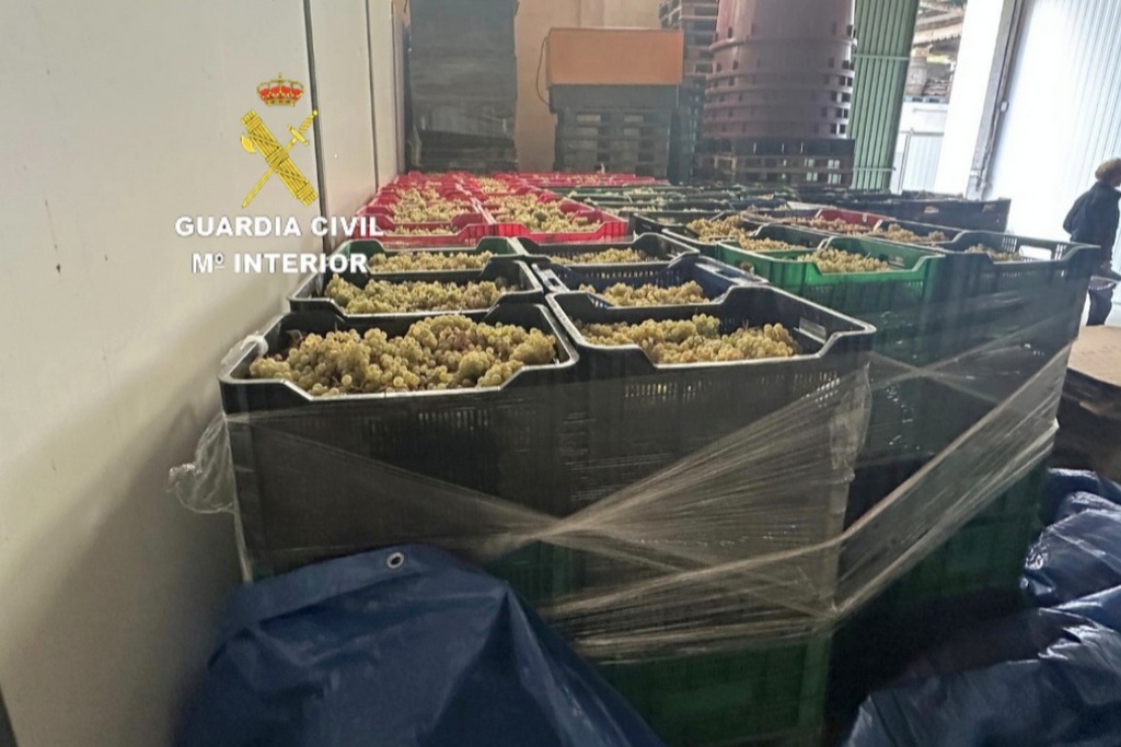 El Seprona de Tui, junto con la Guardia Civil del Puesto de Arbo, procedieron en Salvaterra de Miño a la aprehensión de 6000 kilos de uva blanca localizada en el interior de una nave.