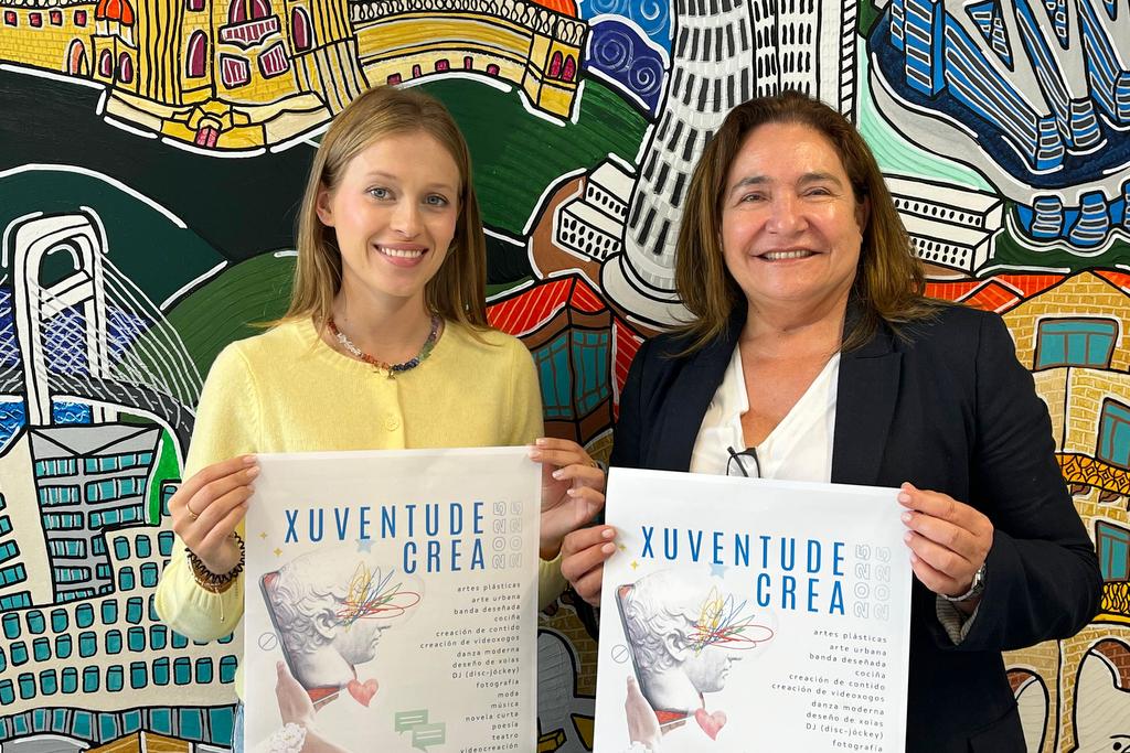 La delegada territorial de la Xunta de Galicia en Vigo, Ana Ortiz, y la directora xeral de Xuventude, Lara Meneses, presentaron el programa Xuventude Crea, una iniciativa de la Consellería de Cultura, Lingua e Xuventude que ha abierto su período de inscripciones hasta el día 29 de este mes a través de la sede electrónica de la Administración Autonómica.