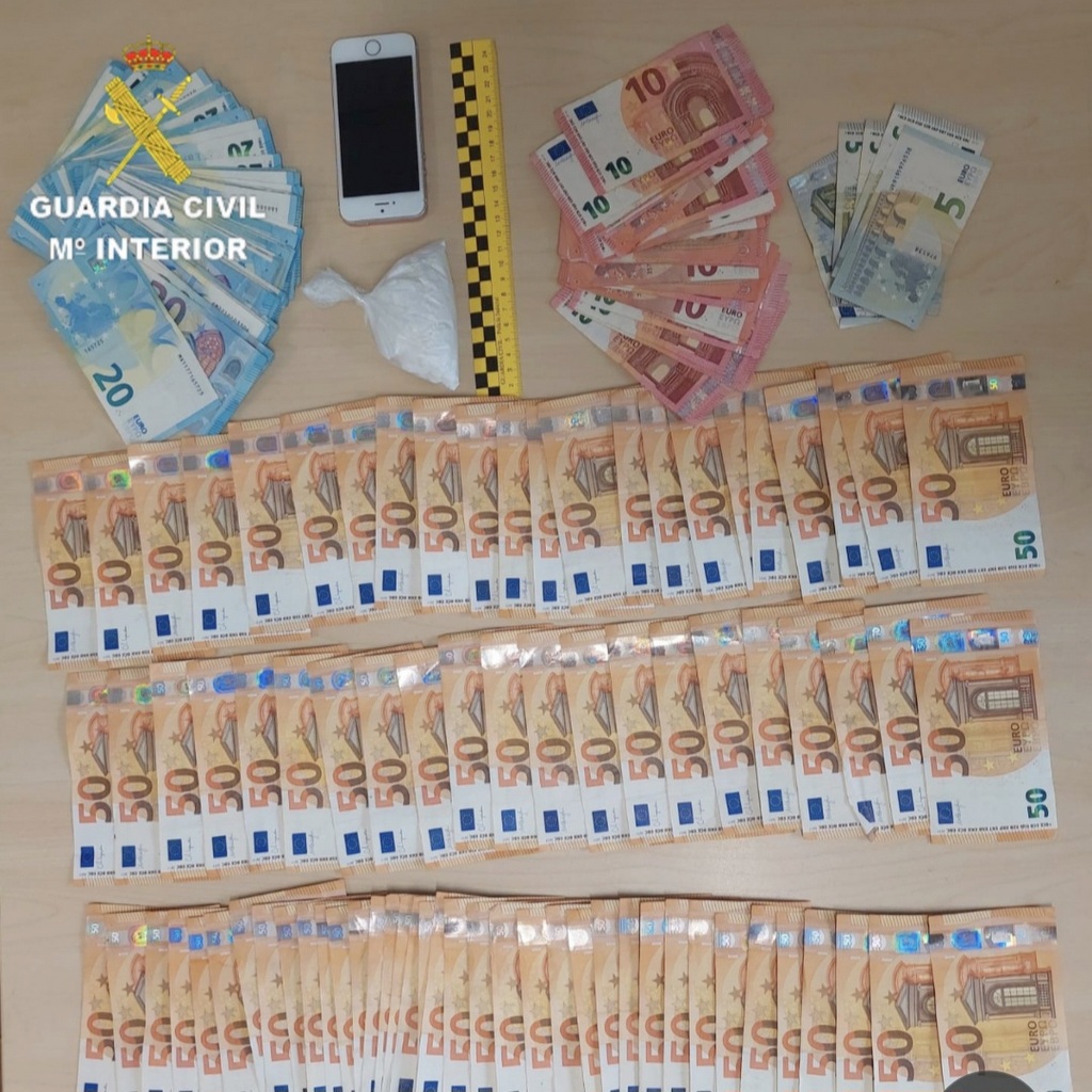 En posterior cacheo y registro de las pertenencias del detenido, se incautan 295 euros (billetes de 50, 20, 10 y 5 euros) que llevaba en su cartera y un teléfono móvil.