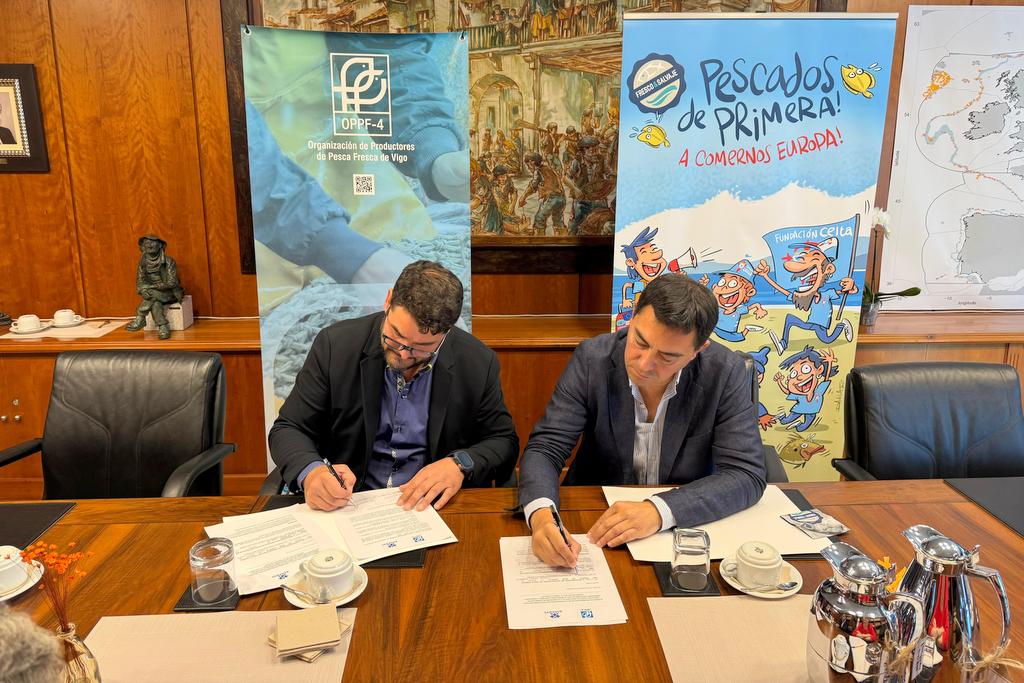 La Organización de Productores de Pesca Fresca del Puerto de Vigo (OPPF-4) y la Asociación de Comercializadores de Pescado de Vigo (ACOPEVI) firman un convenio de colaboración para implantar un etiquetado que refuerce la visibilidad, trazabilidad y responsabilidad del pescado fresco y salvaje comercializado desde el Puerto.