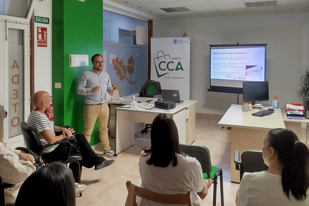 La transformación digital avanza con paso firme en el tejido empresarial del Baixo Miño. Ayer, martes 30 de septiembre, la sede de ADETO en Tomiño fue escenario del curso “Redes Sociales para Empresas: Venta Online en Redes Sociales”, organizado por la Asociación de Empresarios de Tomiño en colaboración con la agencia de marketing digital Tu Consultor de Internet.