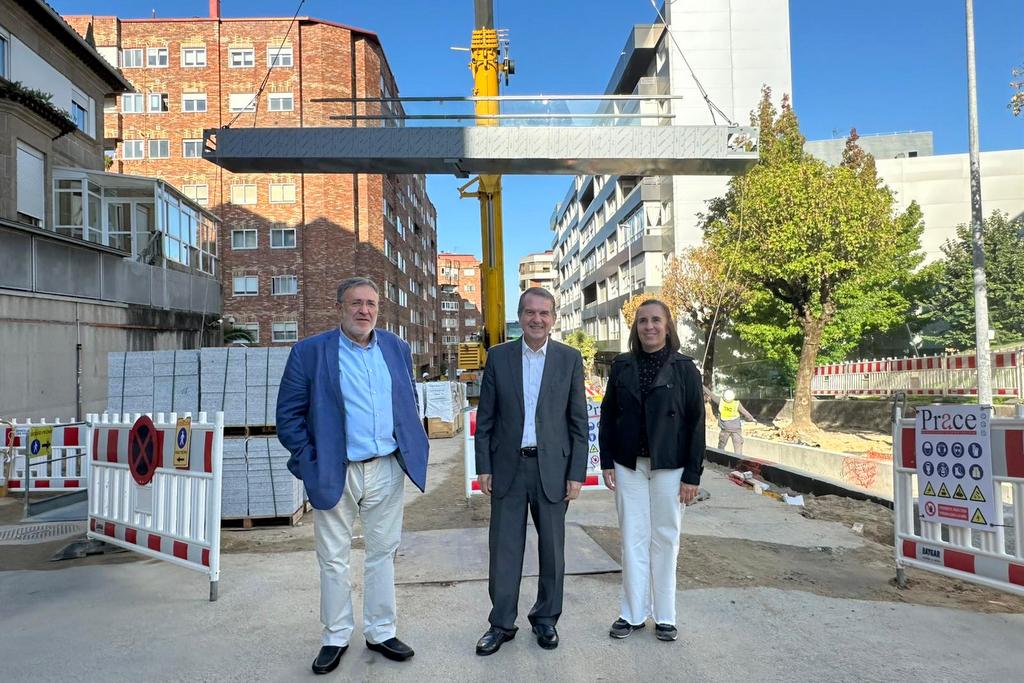 Abel Caballero visitó esta mañana la obra que “marcha a buen ritmo y con calidad notable” con la instalación de las dos rampas de 40 metros de largo cada una, que llegaron a la calle divididas en tres tramos. Tal y como apuntó, estas rampas que permiten salvar una pendiente de 10 metros, constituyen un nuevo corredor que une López Mora con la zona de Hispanidad, contando también con la rampa de Pintor Colmeiro que están en obras.