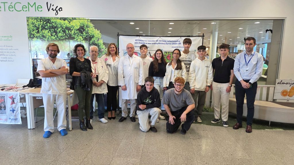 Alumnos y alumnas de 1º de bachillerato del IES A Guía de Vigo recibieron este jueves en el Hospital Álvaro Cunqueiro el segundo premio del Concurso de cortos de vídeo sobre Donación y el Trasplante que organiza la Asociación de Donantes y Receptores de Órganos de Vigo (ADROVI).