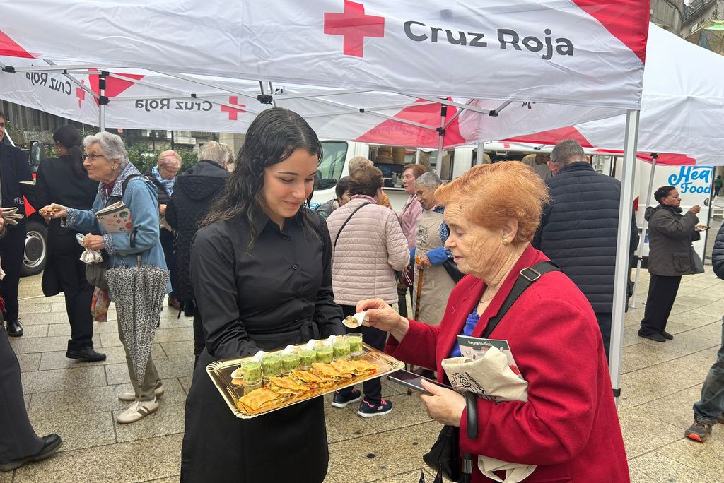 El objetivo de cada una de las sesiones ha sido ofrecer consejos, recetas y degustaciones fundamentados en las claves de una alimentación consciente y de su impacto en la salud. Por eso, a bordo de la food truck, profesionales y alumnado de las escuelas de hostelería CIFP Paseo das Pontes (A Coruña), IES Sanxillao (Lugo), CIFP Vilamarín (Ourense), CIFP Carlos Oroza (Pontevedra) y CIFP Manuel Antonio (Vigo) compartieron, junto al voluntariado y personal técnico de Cruz Roja, los principales detalles esenciales para poner en práctica una alimentación saludable desde los 65 años.