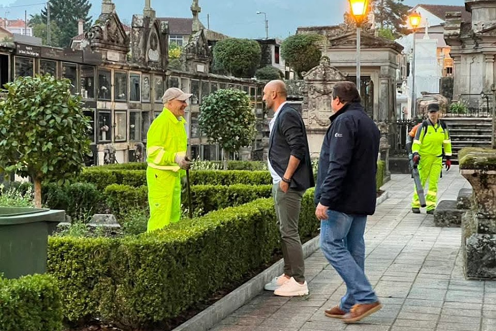 Junto con el concejal de Limpieza y Cementerios, Carlos González, el regidor supervisó estos días los trabajos que están desarrollando los operarios municipales. Las actuaciones incluyen limpieza general, retirada de maleza, barrido de accesos, mejora de las zonas ajardinadas y mantenimiento de las instalaciones, tanto en el interior del cementerio como en las zonas circundantes. Además, desde el Concello también se colabora con el acondicionamiento y puesta a punto de los cementerios situados en las diferentes parroquias.