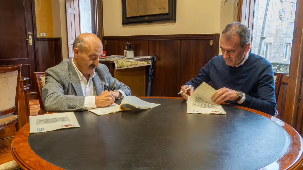 El alcalde de Tui, Enrique Cabaleiro, y el presidente de la Confederación Hidrográfica del Miño Sil, CHMS, José Antonio Quiroga, firmaron esta semana el convenio que posibilitará la construcción de una plataforma sobre el arroyo Cotarel. El documento determina las condiciones para la financiación y ejecución de esta obra que supondrá una inversión de 1,5 millones de euros, de los que el 80% será sufragado por la Confederación y el 20% restante por el Concello de Tui.