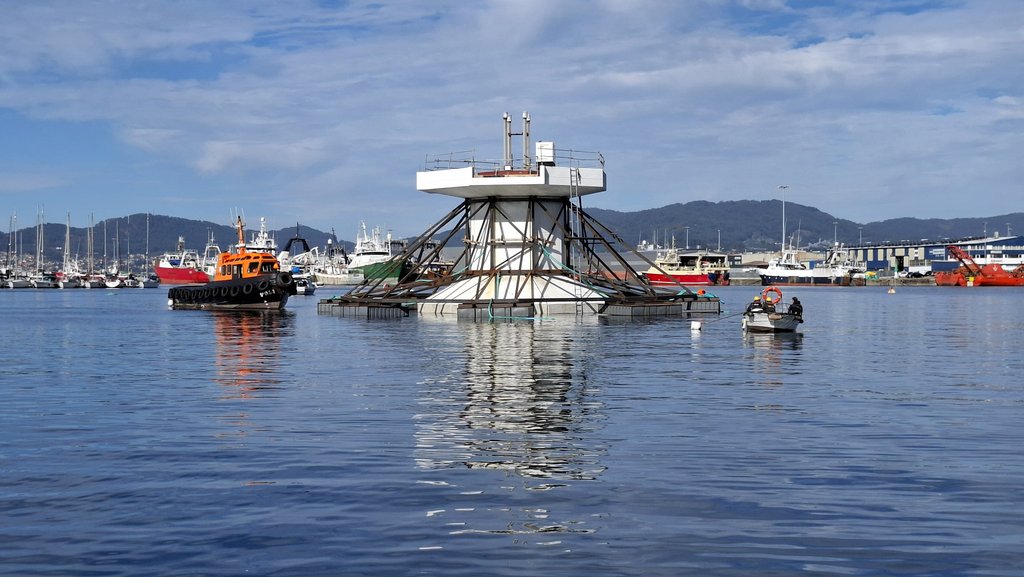 Una vez complete su singladura hacia Bouzas, el visor será posicionado y lastrado gradualmente con agua de mar en sus tanques interiores. Se trata de un proceso lento y paulatino para asegurar que se alcanza la ubicación precisa, ya que el margen de error para su posicionamiento final es de muy pocos centímetros.