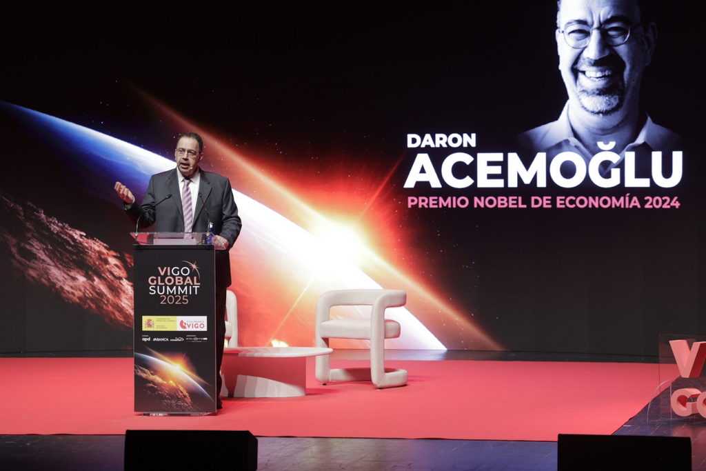 El Premio Nobel de Economía de 2024, Daron Acemoglu, fue el encargado de cerrar la segunda edición del Vigo Global Summit, donde ofreció una reflexión sobre el impacto de la Inteligencia Artificial (IA) en el empleo, la productividad y la desigualdad.