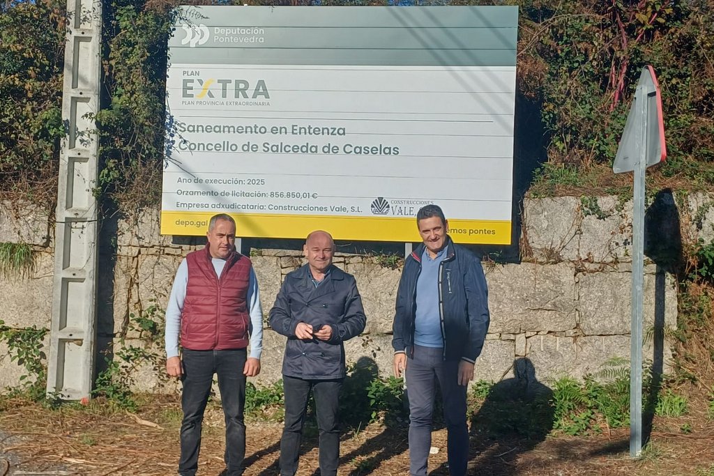 El Concello de Salceda está ejecutando en estos momentos la obra de saneamiento de Entenza, proyecto que cuenta con financiación a cargo del Plan Extra y el Plan +Provincia de la Diputación de Pontevedra. El pasado lunes 27 de octubre, el equipo de gobierno municipal organizó una visita a la mencionada obra, invitando a asistir a la Diputación de Pontevedra y a los grupos de la corporación municipal. La visita se desarrolló con normalidad, contando con la presencia de Pablo Castillo, diputado provincial, y con representación de los cuatro grupos de la corporación municipal (MS, PSOE, BNG y PP).