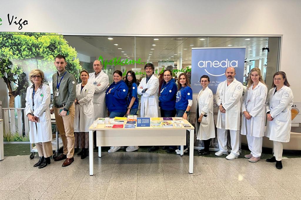 Además de las iniciativas llevadas a cabo en los centros de salud, el Área Sanitaria de Vigo, en colaboración con la Asociación de Nenas, Nenos e Xente Nova con Diabetes de Galicia (Anedia), también celebró esta jornada con diversas actividades informativas. Por la mañana se instalaron mesas informativas en el Hospital Meixoeiro y en el Álvaro Cunqueiro, en las que profesionales sanitarios y representantes de Anedia ofrecieron información, asesoramiento y material divulgativo a las personas usuarias. Estas mesas permitieron resolver dudas sobre el control de la diabetes, conocer mejor los avances tecnológicos disponibles y acercar recursos que facilitan el manejo de esta enfermedad crónica.