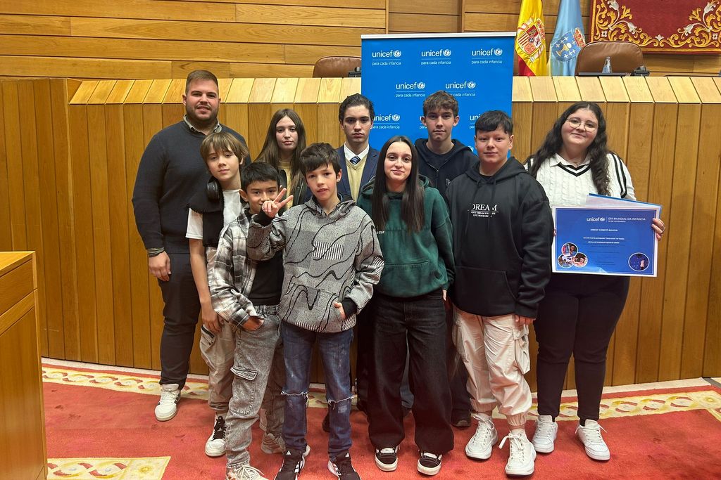La infancia y juventud de Tomiño no espera a que otros decidan por ellos: las y los integrantes del grupo de participación infantil y juvenil Voces Novas representaron al ayuntamiento en el XIII Foro de Participación Infantil y Adolescente de UNICEF 2025 en el Parlamento gallego, un encuentro centrado en los derechos digitales y en la privacidad en las redes.