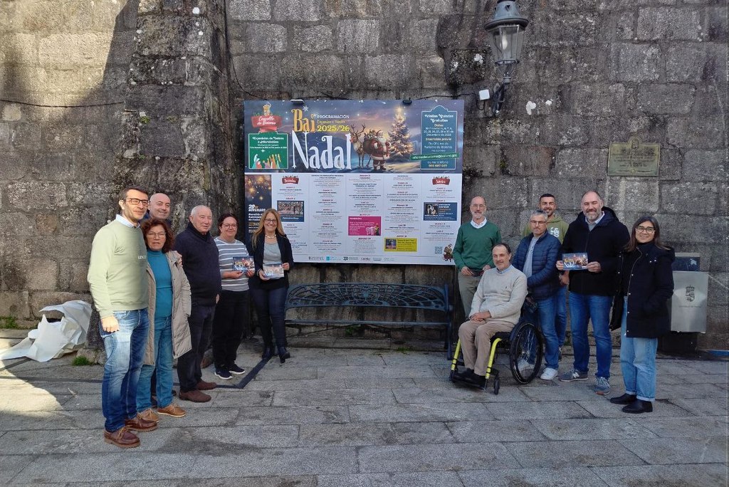 Este jueves se presentó en el Salón de Plenos del Concello de Baiona la programación Bainadal 2025. En este acto, el Concello de Baiona dio a conocer toda la programación lúdica y festiva en estas fechas de Navidad, que tendrá lugar durante todo el mes de diciembre y primera semana de enero en la Villa y en las parroquias del municipio.