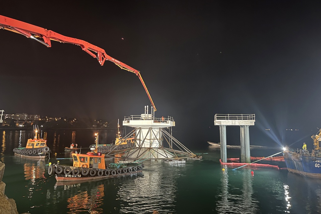 Tras su singladura hacia Bouzas, el visor fue posicionado y lastrado gradualmente con agua de mar en sus tanques interiores. Un proceso lento y paulatino que sirvió para asegurar que se alcanzaba la ubicación precisa.