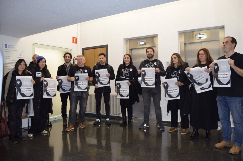 Las comitivas harán paradas en diversos centros educativos durante el recorrido para colgar esquelas, cartelería y crespones negros para hacerle visible a las familias y al alumnado las reivindicaciones del profesorado por una enseñanza pública gallega con derechos para todas las personas.