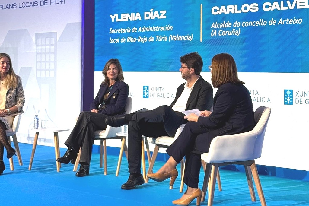 La alcaldesa de Ponteareas, Nava Castro, participó en la jornada “Cara a Transformación Dixital: plans locais de I+D+i”, organizada por la Xunta de Galicia en la Cidade da Cultura, donde fue invitada a intervenir en una mesa redonda titulada “Innovando desde o local: casos prácticos” junto con el alcalde de Arteixo, Carlos Calvelo, y la secretaria de Administración Local de Riba-roja de Túria (Valencia).