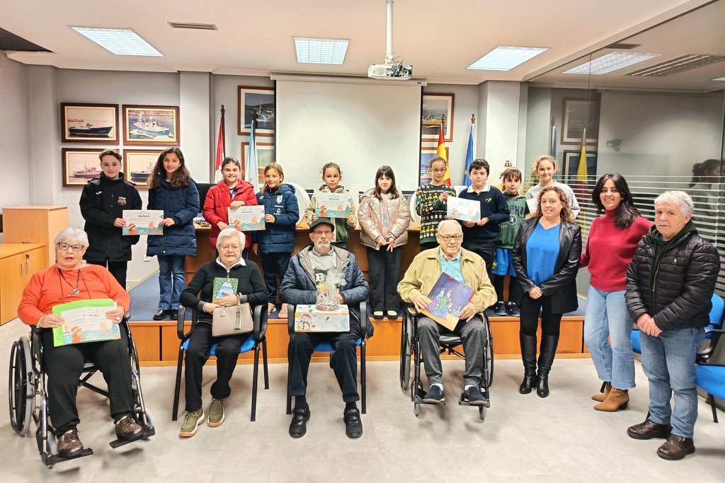 Cartas y dibujos hechos por los niños y niñas de A Guarda sirvieron este miércoles para reunir a dos generaciones que tenían ganas de hablar, escucharse y compartir un rato juntas. Así fue la iniciativa solidaria “Mar de Mensajes”, impulsada por la Organización de Palangreros de A Guarda (ORPAGU), que reunió a alumnado de 4º de Primaria con personas mayores de la Residencia Monte Tecla en un encuentro cercano y sincero.