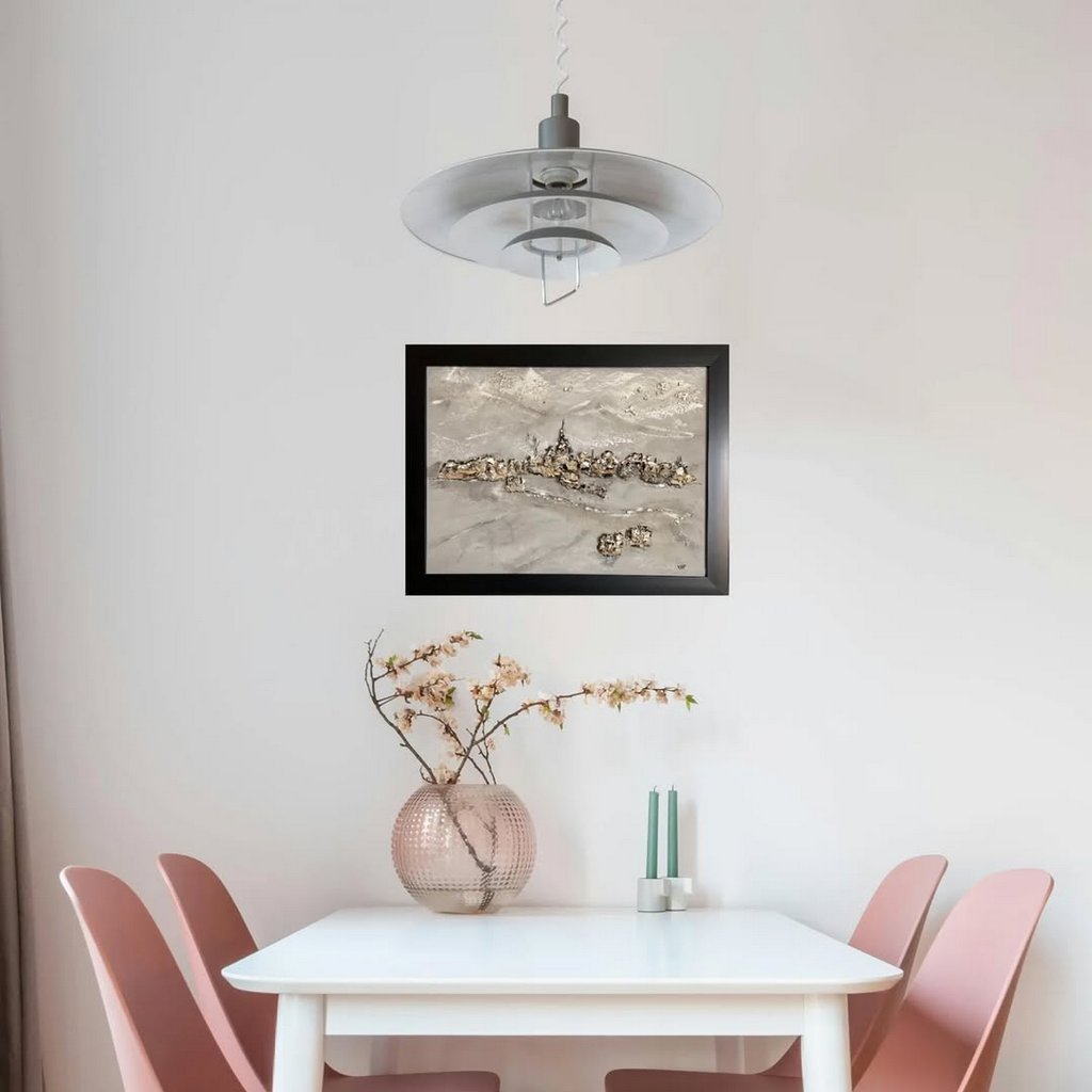 Hace tres años, en un proceso de introspección y necesidad de expresión personal, retoma la práctica artística y comienza a desarrollar un lenguaje propio. Su obra combina pintura acrílica, madera recuperada y marmolina, dando lugar a piezas con una fuerte carga matérico-expresiva, donde las texturas y los volúmenes juegan un papel esencial. En muchas de sus creaciones incorpora telas u objetos reciclados, elementos que actúan como detonantes del proceso creativo.