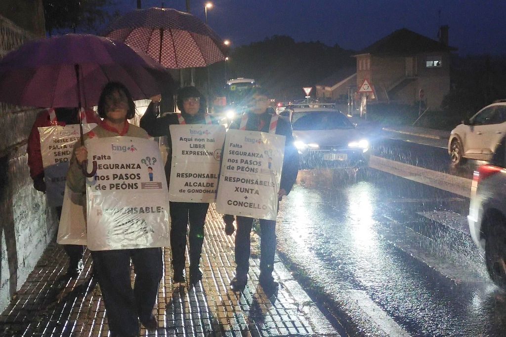 “Allí fuimos el BNG, esta vez con los carteles encima de nosotros, eso sí”, para volver a denunciar la situación en el momento del día en que el peligro es mayor, a primeras horas de la mañana de un día laborable, cuando el tráfico es más denso, la falta de luz no ayuda y los movimientos a pie en la parroquia son más elevados. “Y seguiremos denunciando en otros puntos del ayuntamiento, de esta y de otras maneras, imaginación no falta”.
