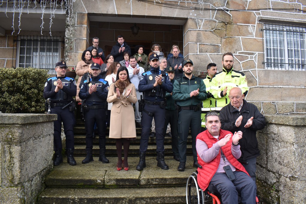 En el acto participaron miembros del equipo de gobierno municipal, trabajadores y trabajadoras del Concello de Mos, efectivos de la Policía Local de Mos, de la Guardia Civil de Mos y Emergencias de Mos, así como vecinas y vecinos que quisieron sumarse a este gesto colectivo de duelo y recuerdo.