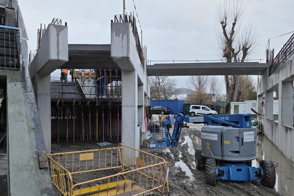 La construcción de la nueva Grada de Gol sumó hoy un nuevo hito con la instalación del primer forjado del suelo de la primera planta en la zona próxima a Río, que se realiza en paralelo a la instalación de pilotes en el área próxima a Tribuna, según remarcó el alcalde.