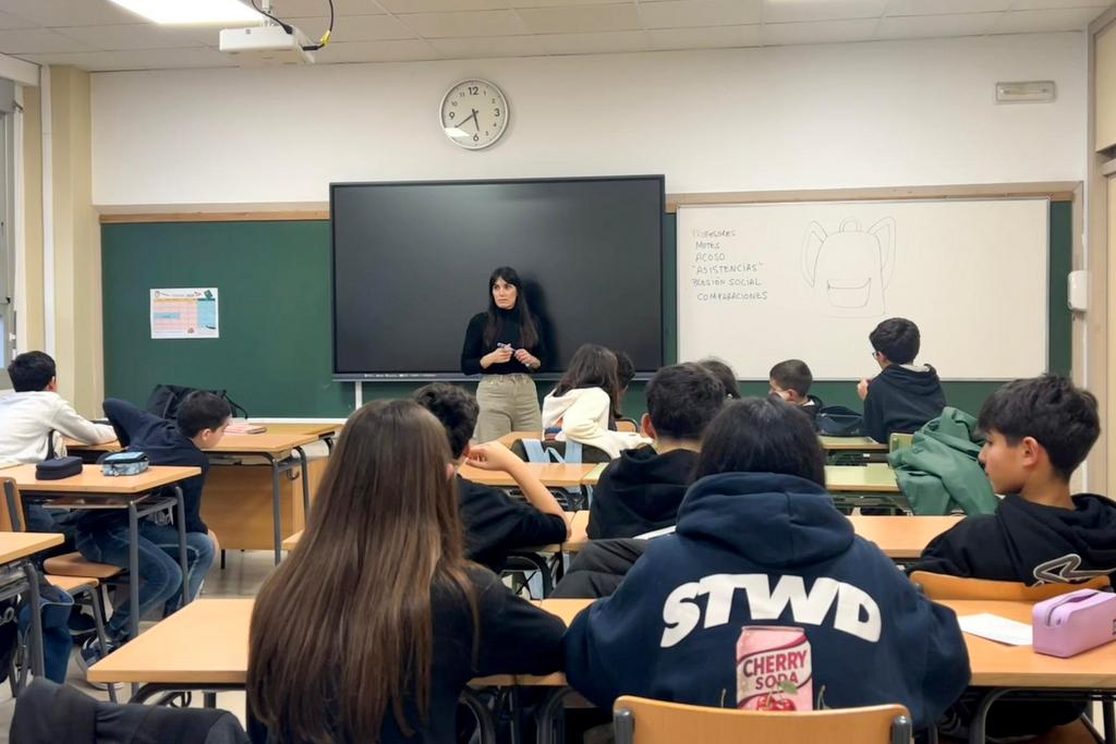 La psicóloga Andrea Iglesias dirige esta actividad, que busca ser “participativa con dinámicas diferentes y también escuchando las dudas y necesidades del alumnado”. “Además, hay que adaptarse al contexto y las edades y particularidades de cada clase”.