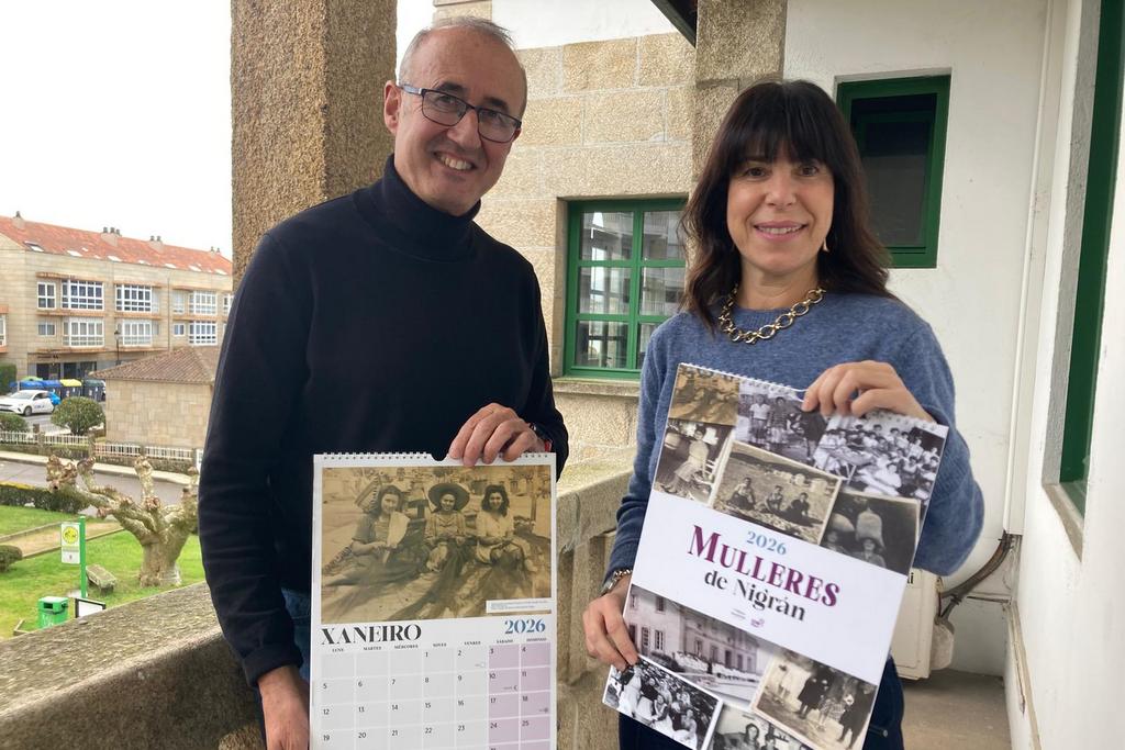 El Concello de Nigrán viene de editar el almanaque 2026 de mujeres nigranesas de antaño en formato para colgar en la pared (tamaño A3) ante la demanda de los vecinos (en diciembre se repartió como calendario de mesa). Las personas interesadas pueden recogerlo gratuitamente en la Oficina de Información Ciudadana, Biblioteca Municipal, CIM, quiosco de prensa de A Ramallosa o Plaza de Abastos. En este tradicional calendario que cada año se edita a través de la Concejalía de Igualdad aparecen una docena de imágenes antiguas, once de ellas donadas por los vecinos para el Archivo Histórico Audiovisual, y una extraída del Archivo de la Emigración Gallega dependiente del Consello da Cultura Galega. El objetivo es reivindicar y visibilizar a las vecinas de Nigrán como sujeto histórico imprescindible para entender el municipio: rederas, costureras, peluqueras, lecheras, cabezas de familia, amigas en momentos de ocio o fiesta…