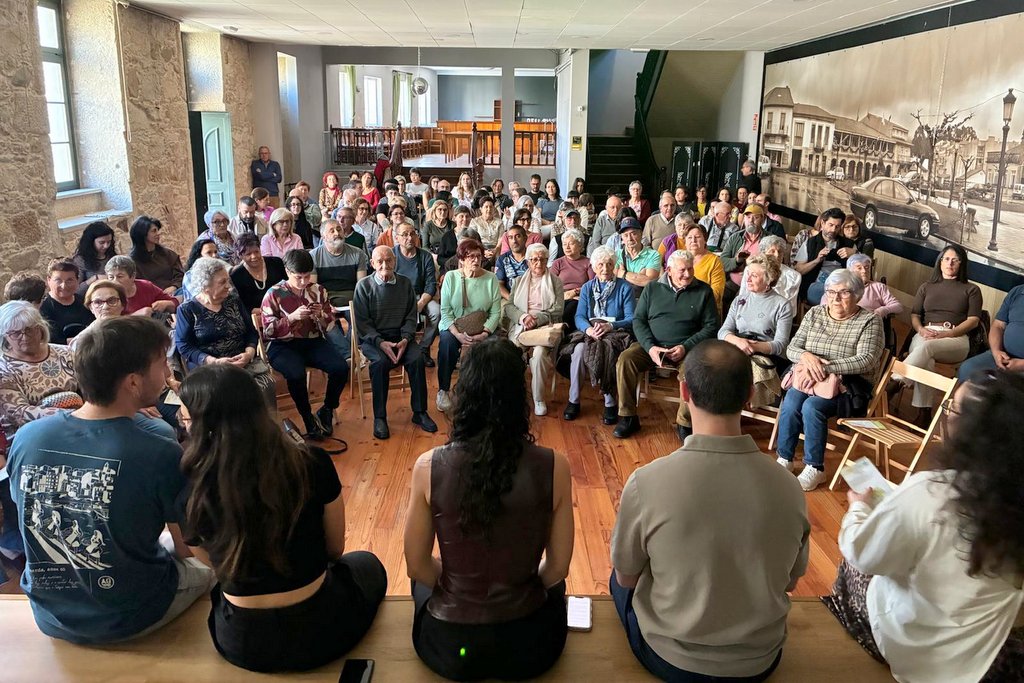 El proyecto se presentó al público en un acto lleno de emoción y con gran acogida que contó con la presencia de los jóvenes y de algunas de las personas participantes en la iniciativa, que compartieron las experiencias vividas hasta el momento en este proyecto que lleva recorriendo las parroquias rosaleiras con encuentros y entrevistas desde principios de año para recuperar, reinterpretar, nombrar y difundir la memoria colectiva de O Rosal desde una mirada contemporánea.
